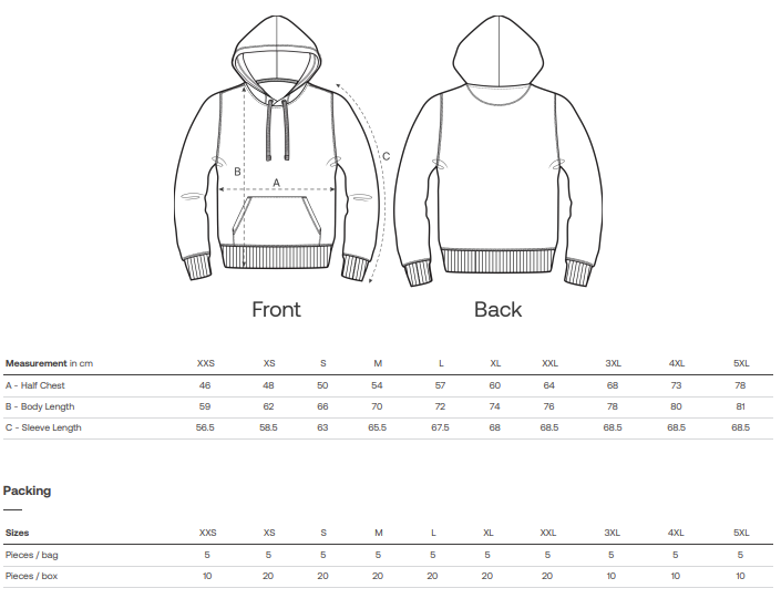 XS, S, M, L, XL, XXL, 3XL